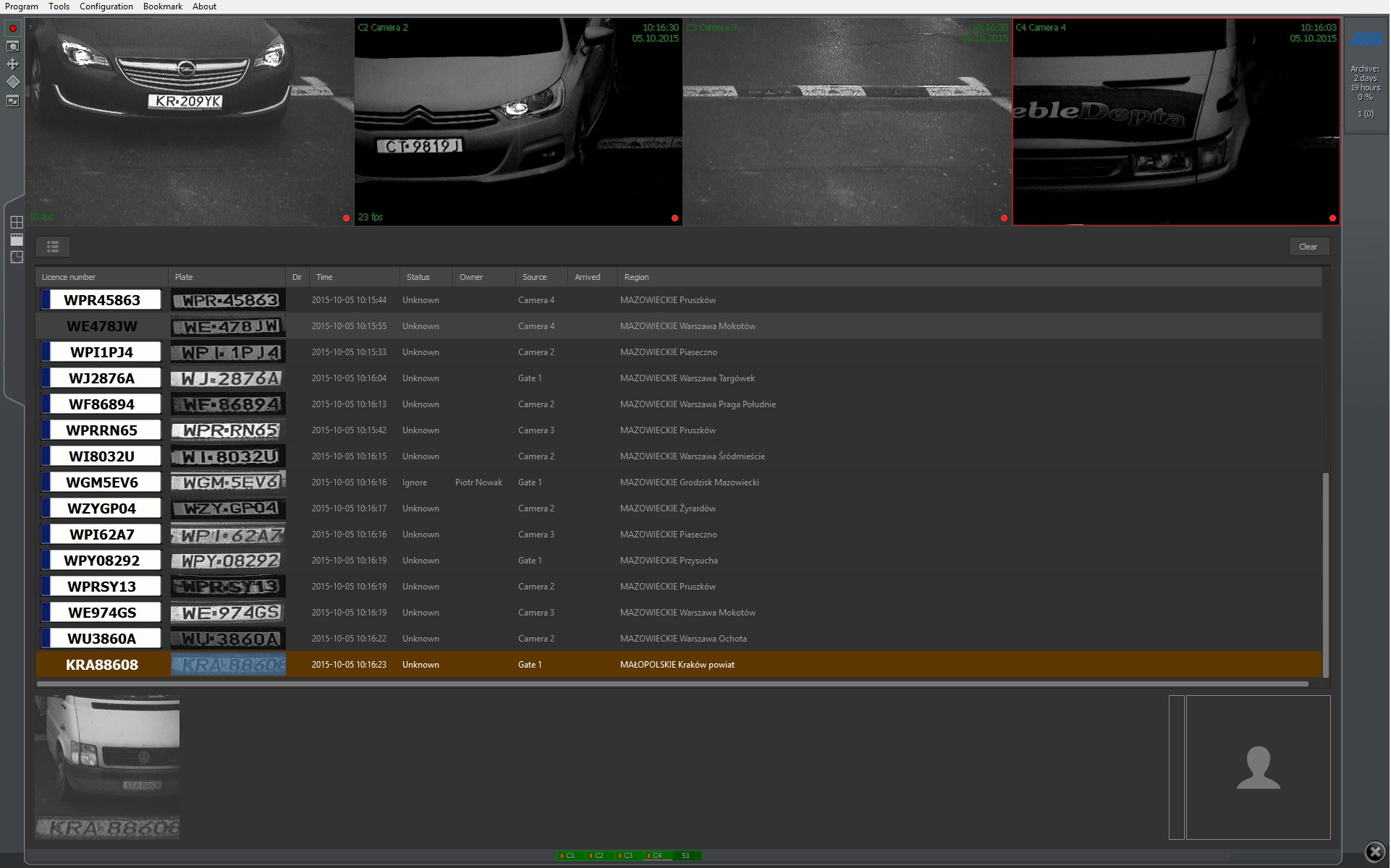 PRS Alnet (ANPR) is free addition to NetStation/NetHybrid software, which allows recognition and processing of cars license plates. Extensive functionality makes it easy to generate reports and quick analysis of the collected data.